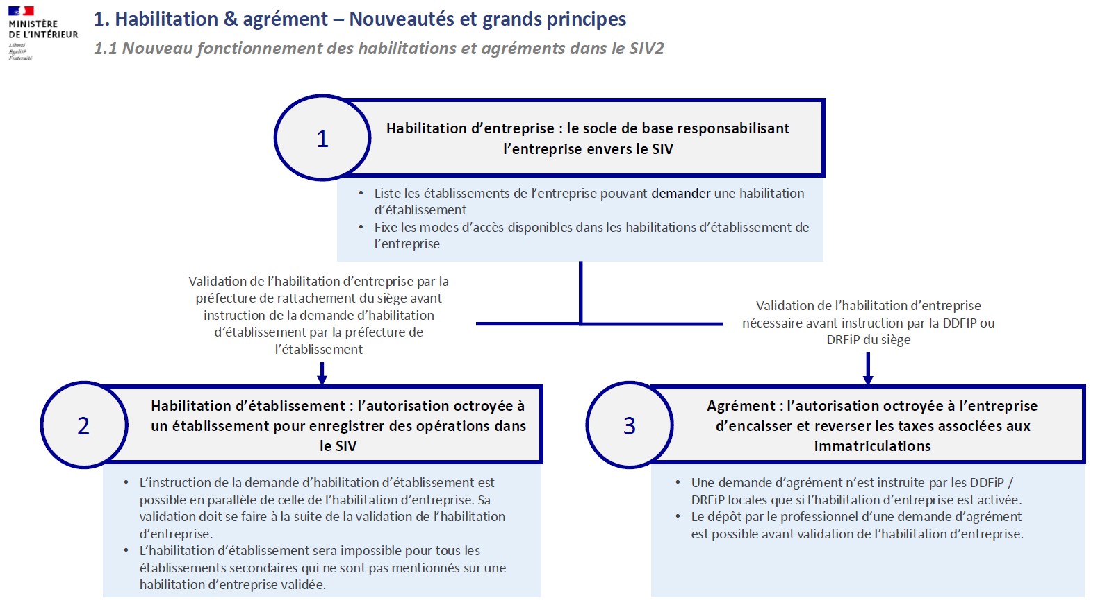 Dans le cadre de la mise en place progressive du SIV 2, qui à terme remplacera le SIV actuel, il est attendu des professionnels de l’automobile habilités et agréés un certain nombre de vérifications et de mise à jour des données de leur habilitation.